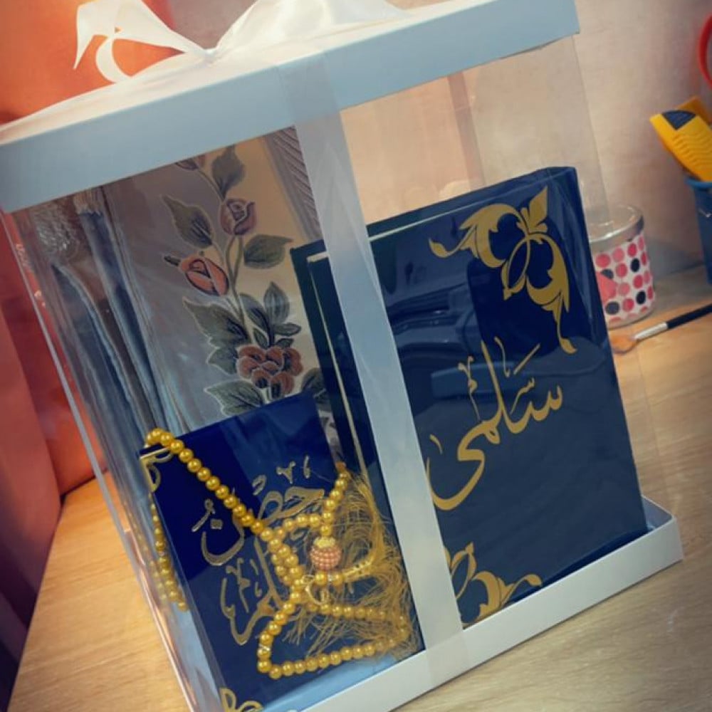 بوكس سجاده و مصحف بالاسم (يختلف السعر حسب المحتوي و نوع السجادة)