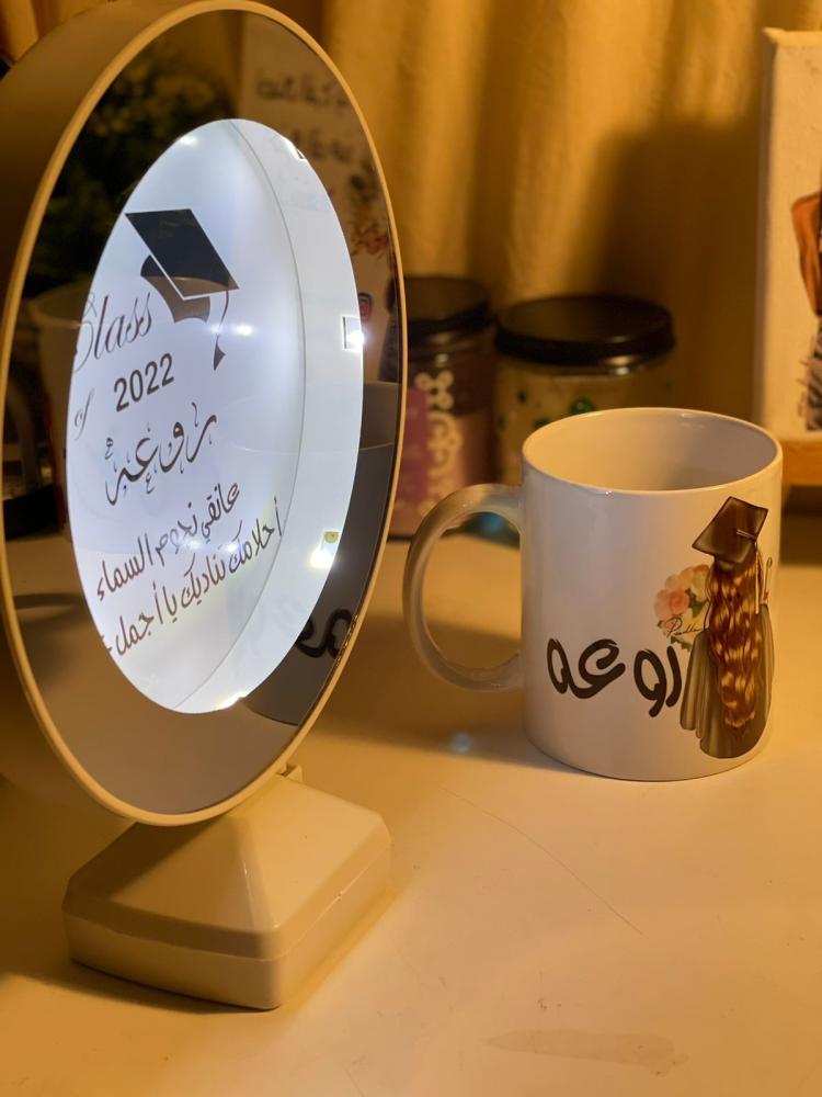 مرايه مضيئه+كوب بتصميم حسب الطلب
