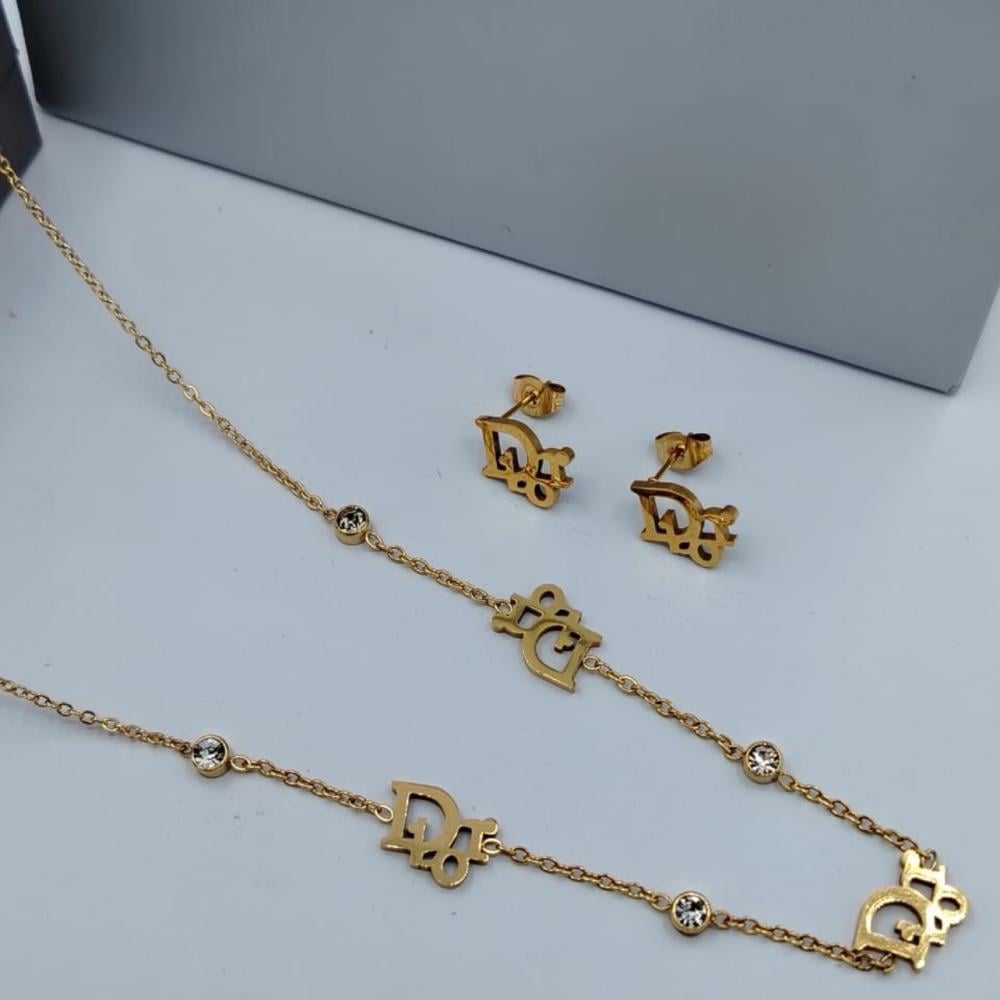 اكسسوار ديور سلسال+حلق مع علبه وكيس الماركة