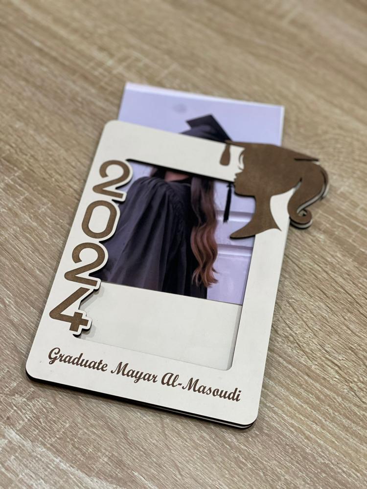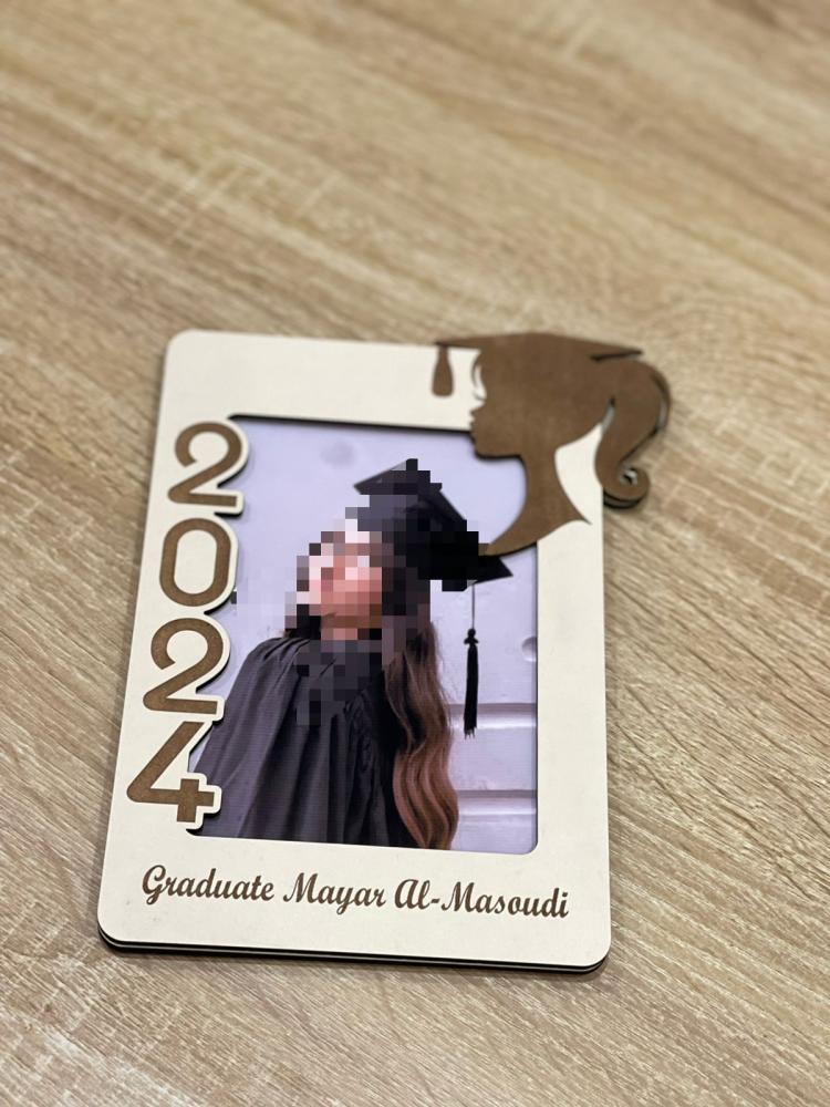 اطار خشبي بنحت لاسم الخريج + صوره شخيصه